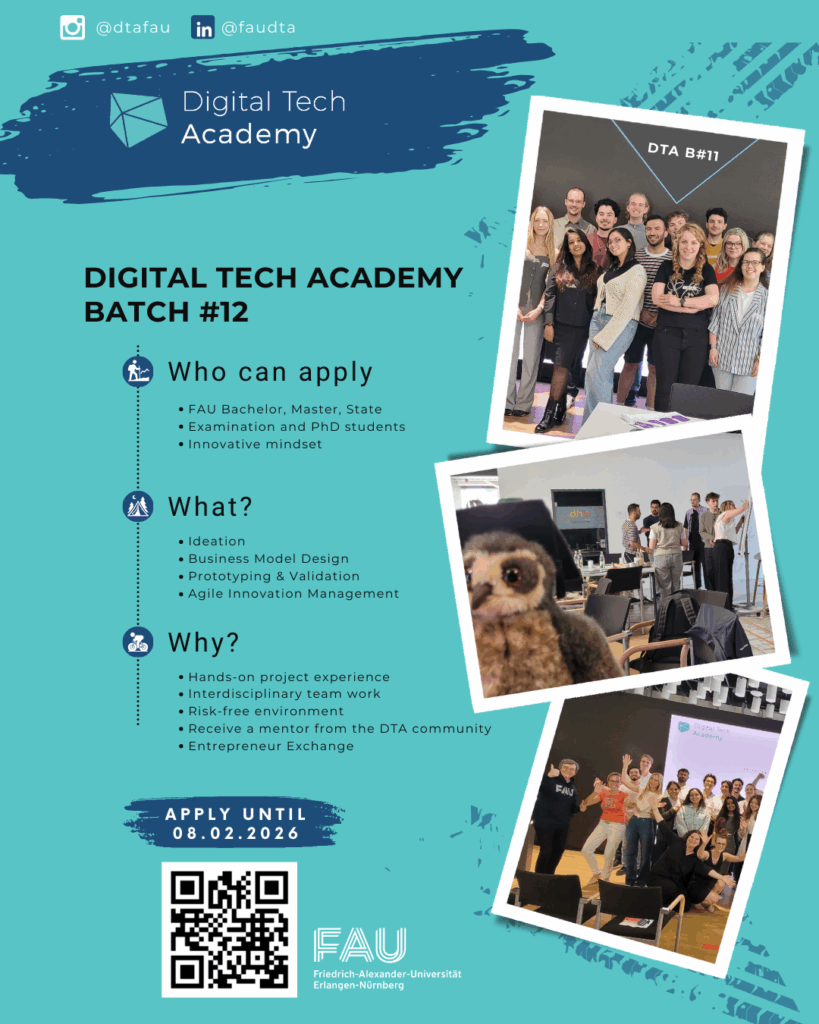 The FAU Digital Tech Academy program will enter its 12th round (DTA B#12) in the upcoming summer semester of 2026!